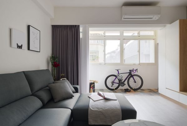 為了讓小宅也能住的從容舒適,設計師目標是開放式空間設計,讓各場域串連一起,並降低空間壓迫感,使整個空間顯得更加寬敞跟明亮。並期望可以給喵星人一個毫無阻礙的活動空間。將客廳跟喵星人的活動空間作結合,讓喵星人也能從貓道自由遊走。
