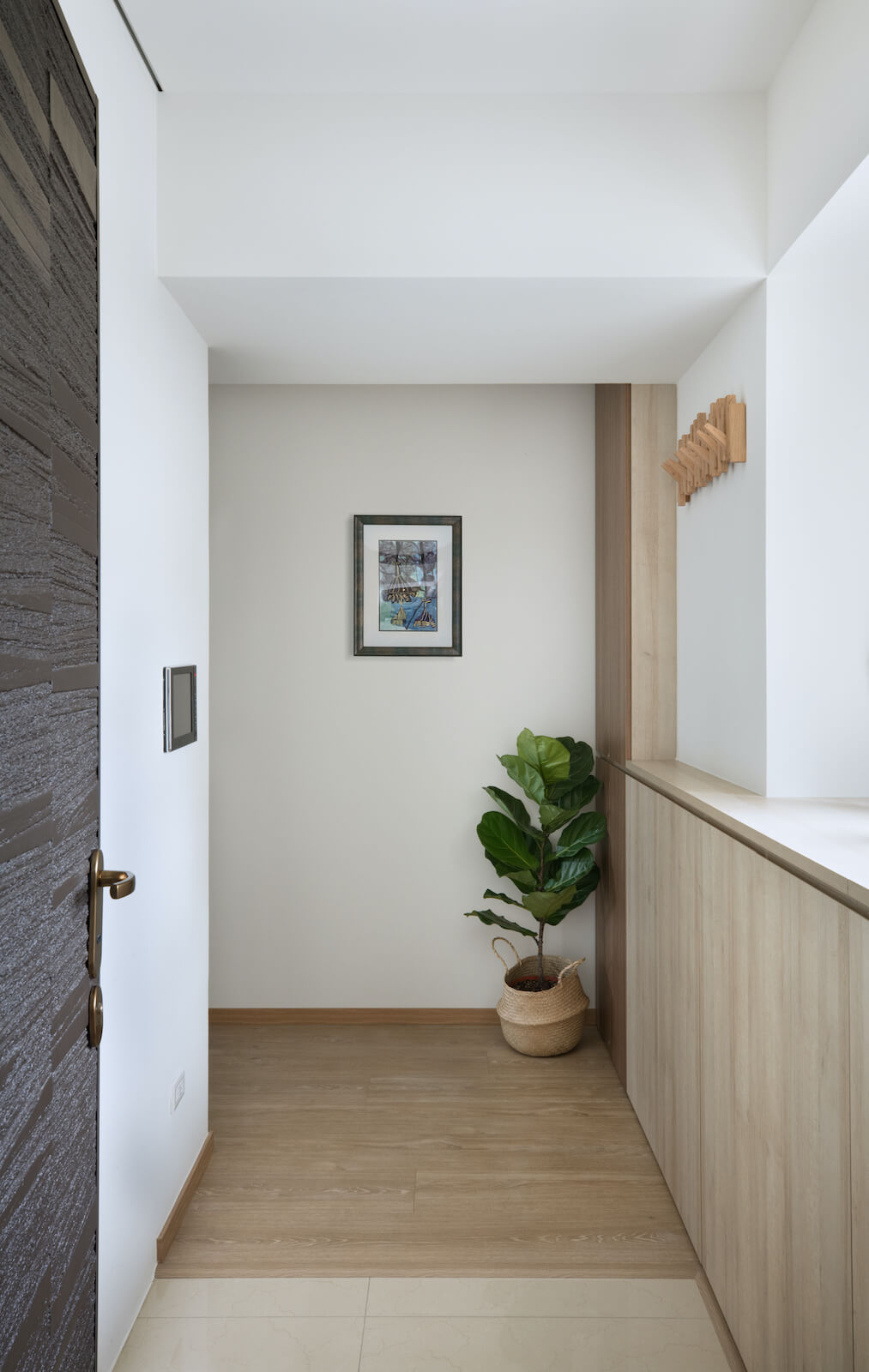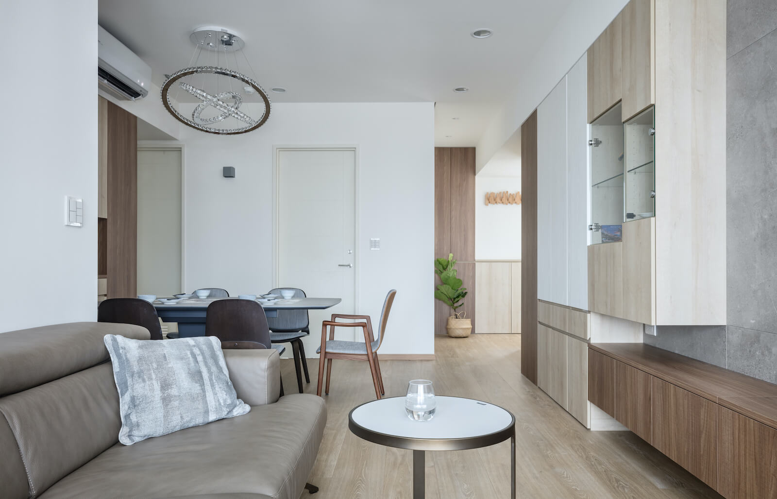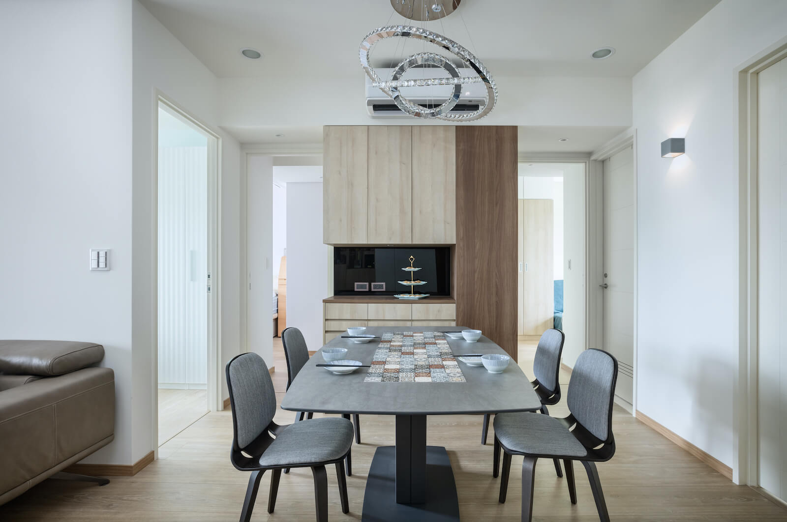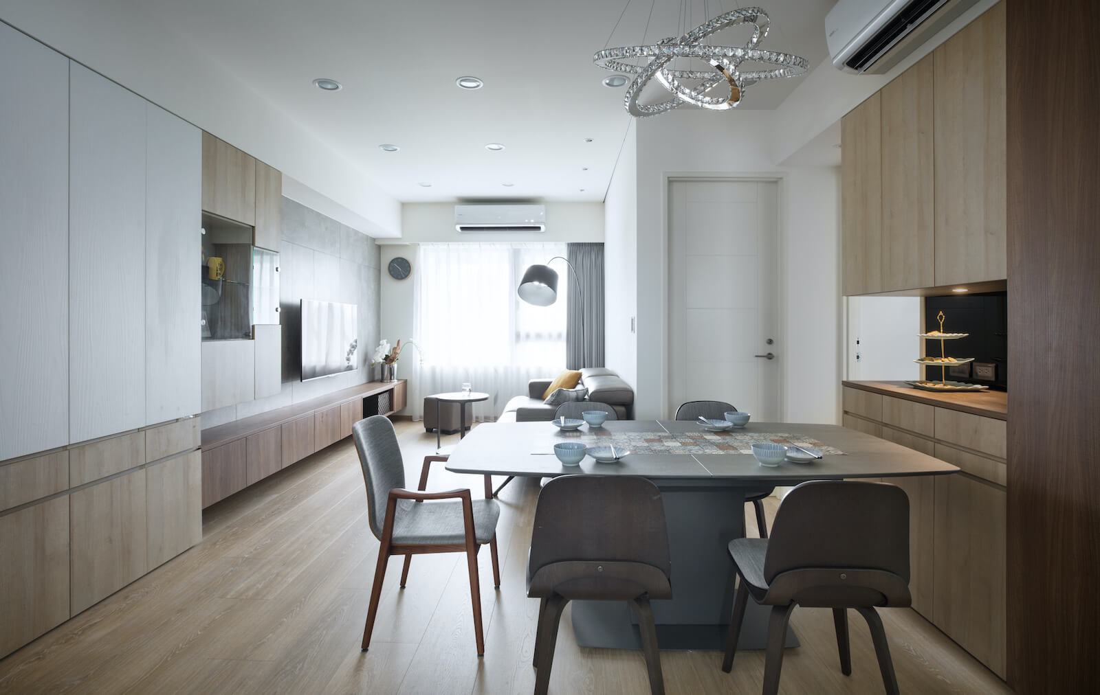 女屋主是透過網路搜尋看到我們的官網,進而有了合作的緣分。原本是希望無印的設計風格,也因女主人愛上一盞夢幻水晶吊燈,於是多了些設計自由度更多的現代北歐風呈現。