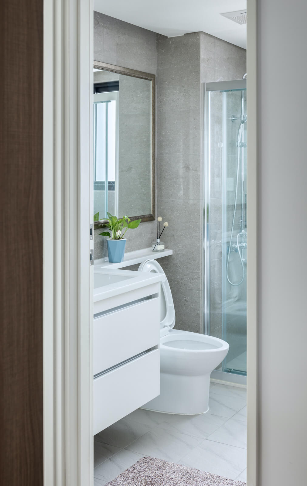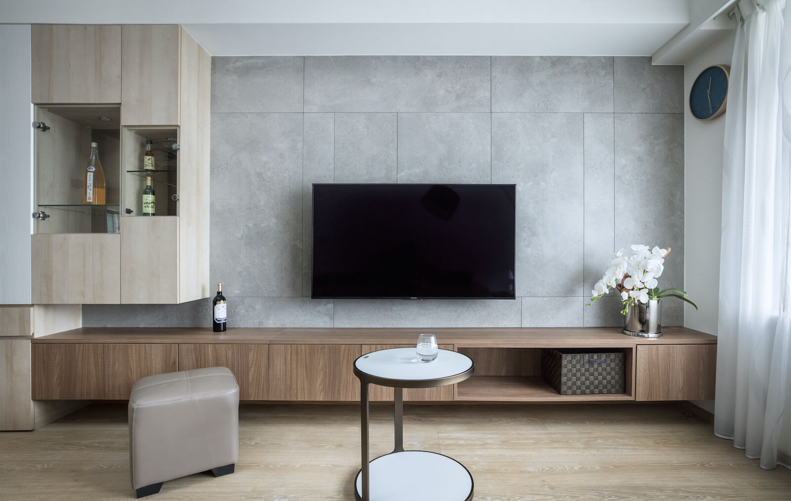 120×60 cm磁磚、系統櫃、玻璃、乳膠漆、超耐磨木地板