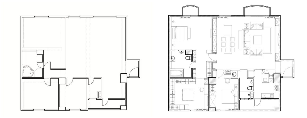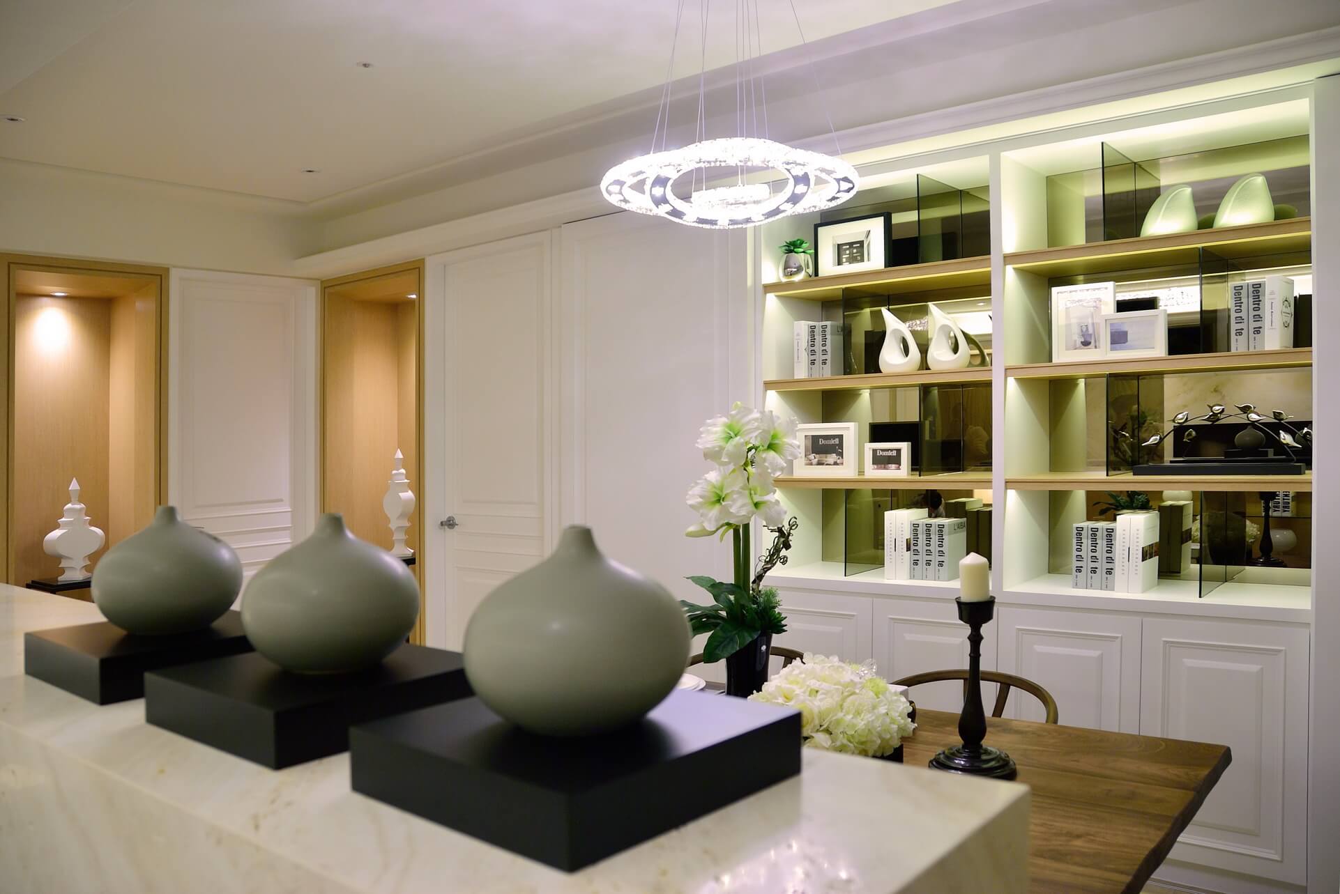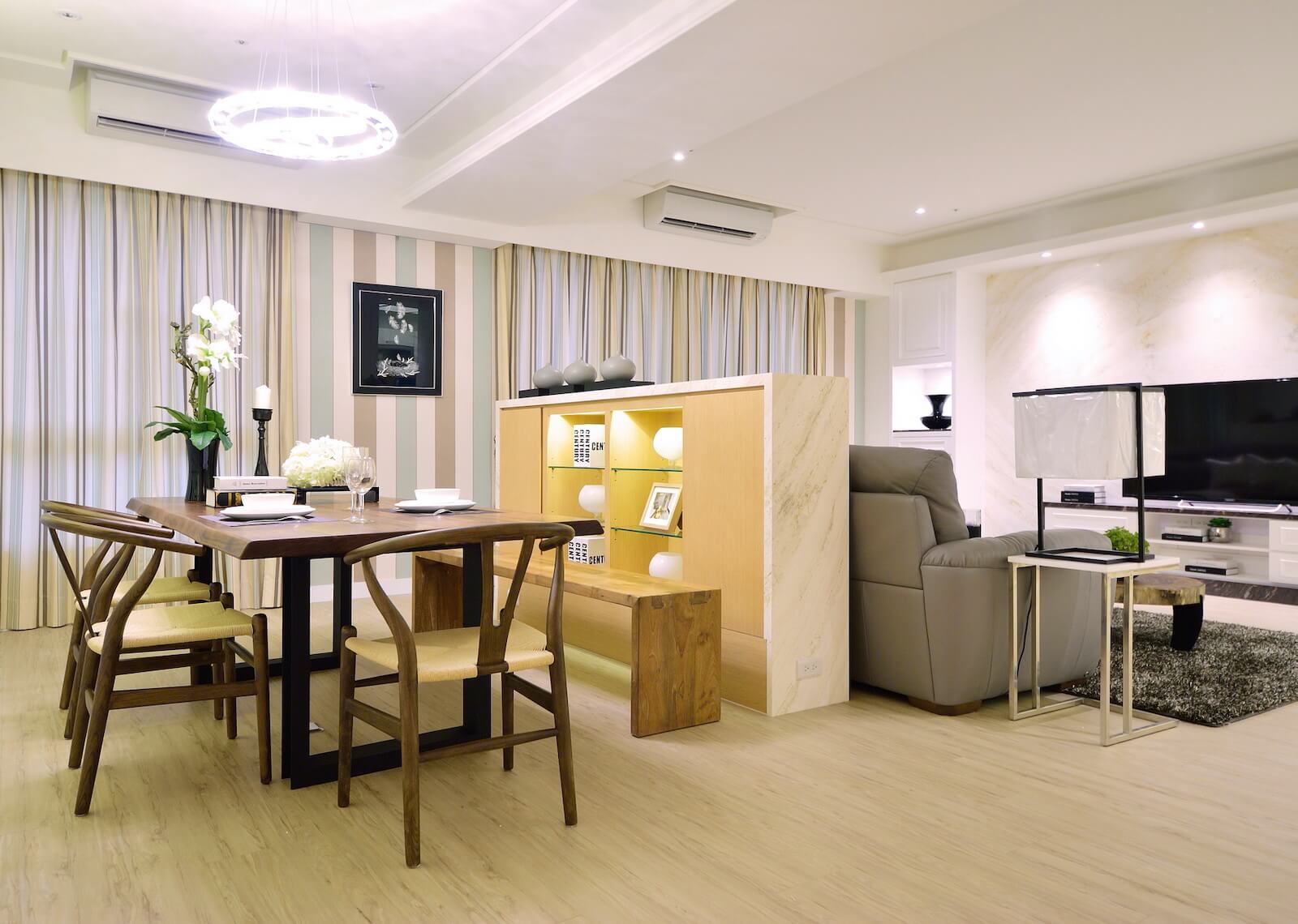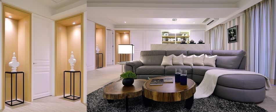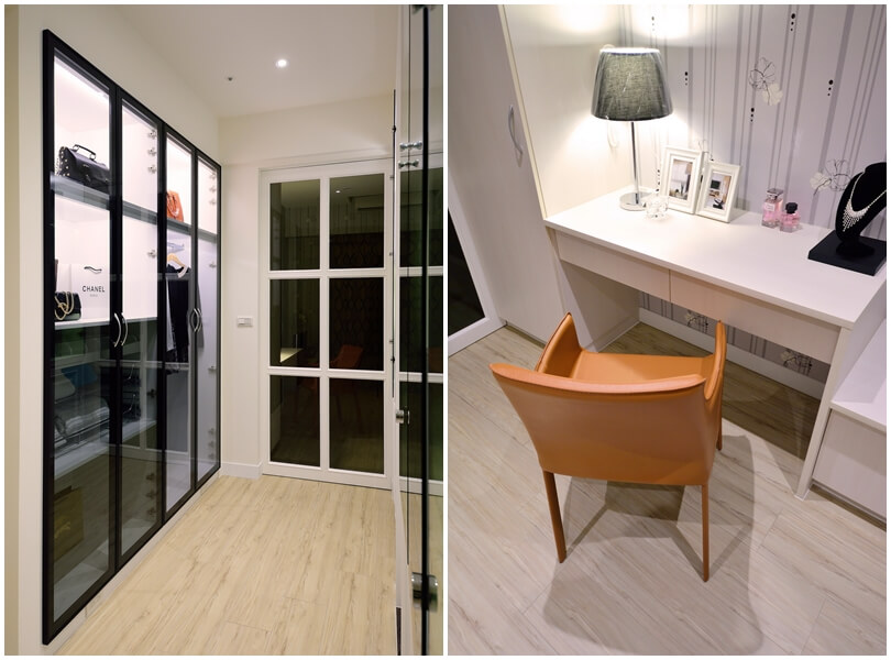 在住家的機能、需求上,夫妻倆各有理想,女主人希望能有大間的更衣室和展示區、多處的收納空間,男主人則希望能在衛浴空間加上小便斗。也因著居住的人口數不多,原本三房兩廳的空間,就需要將全室的格局做一些調整,以更加輔合屋主的需求夢想。