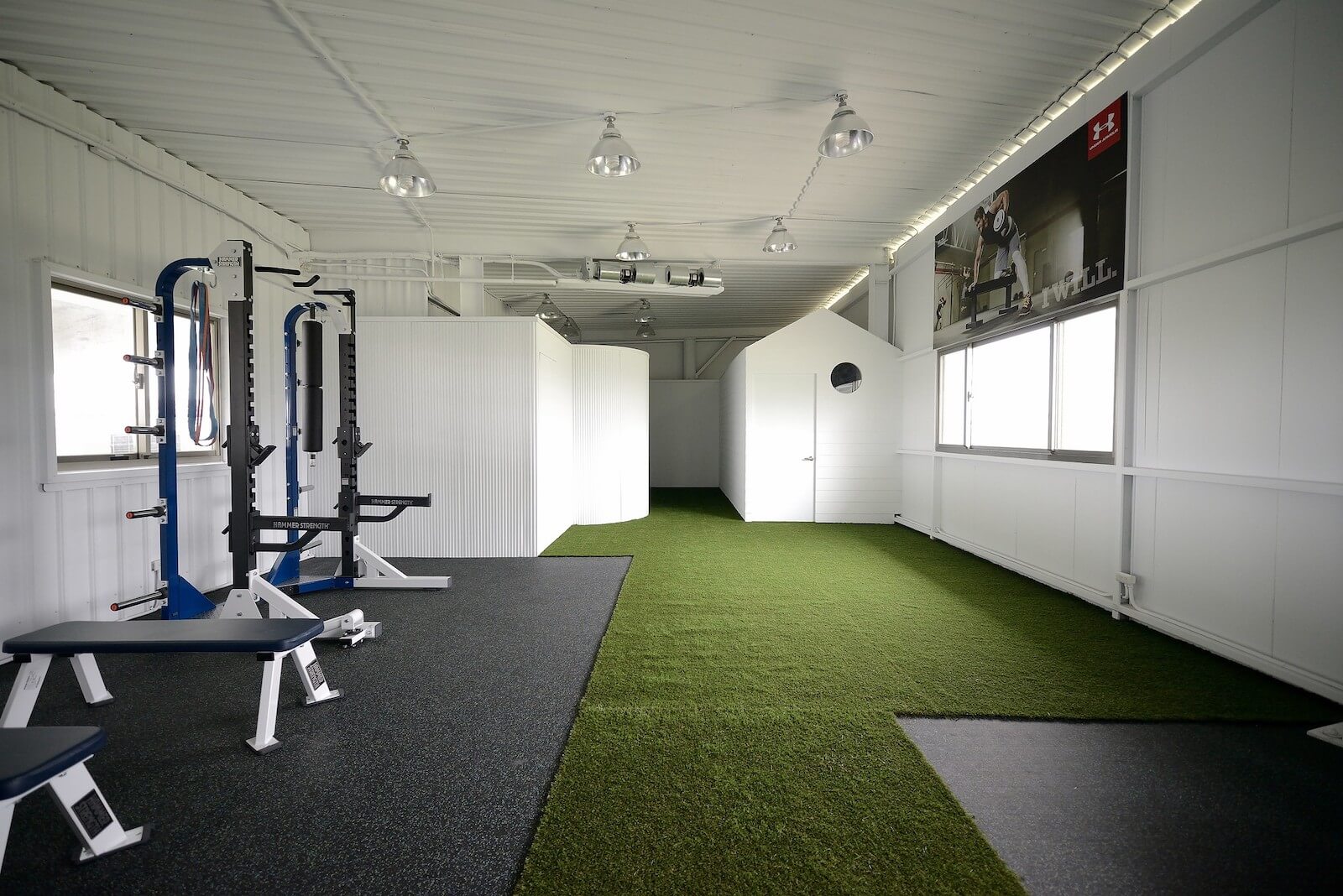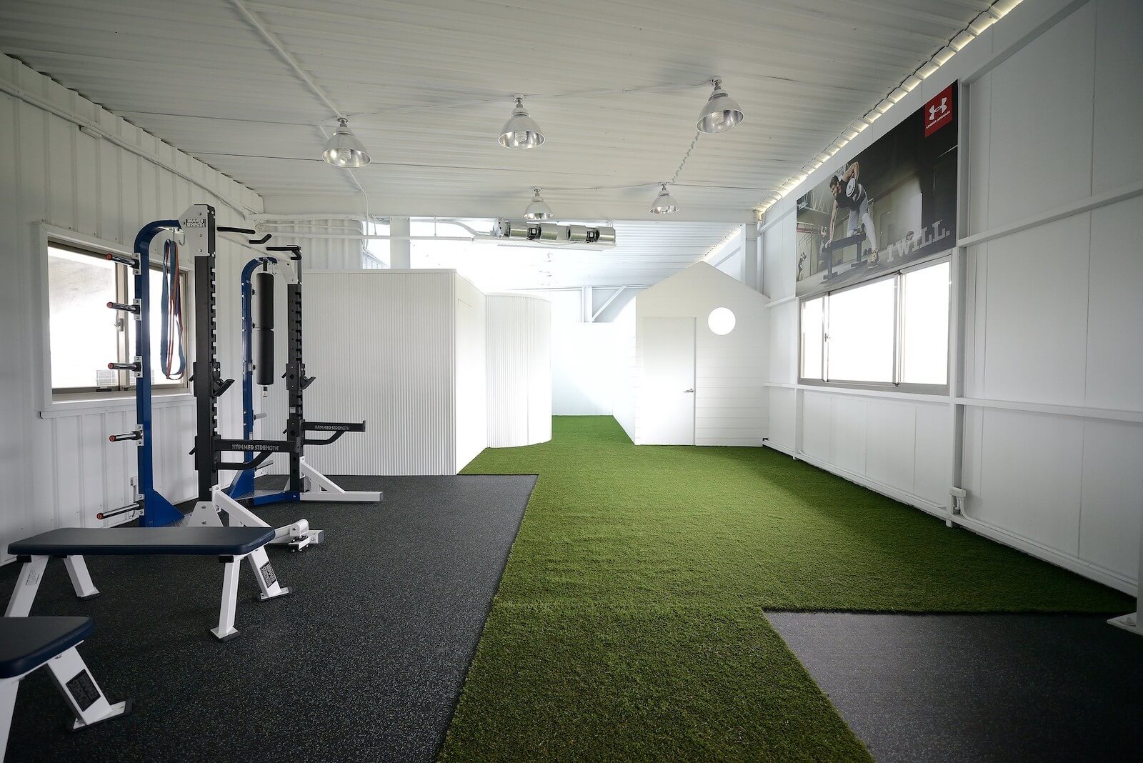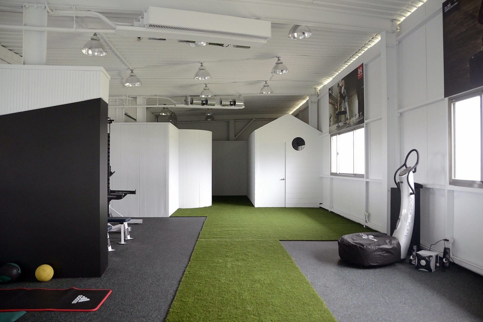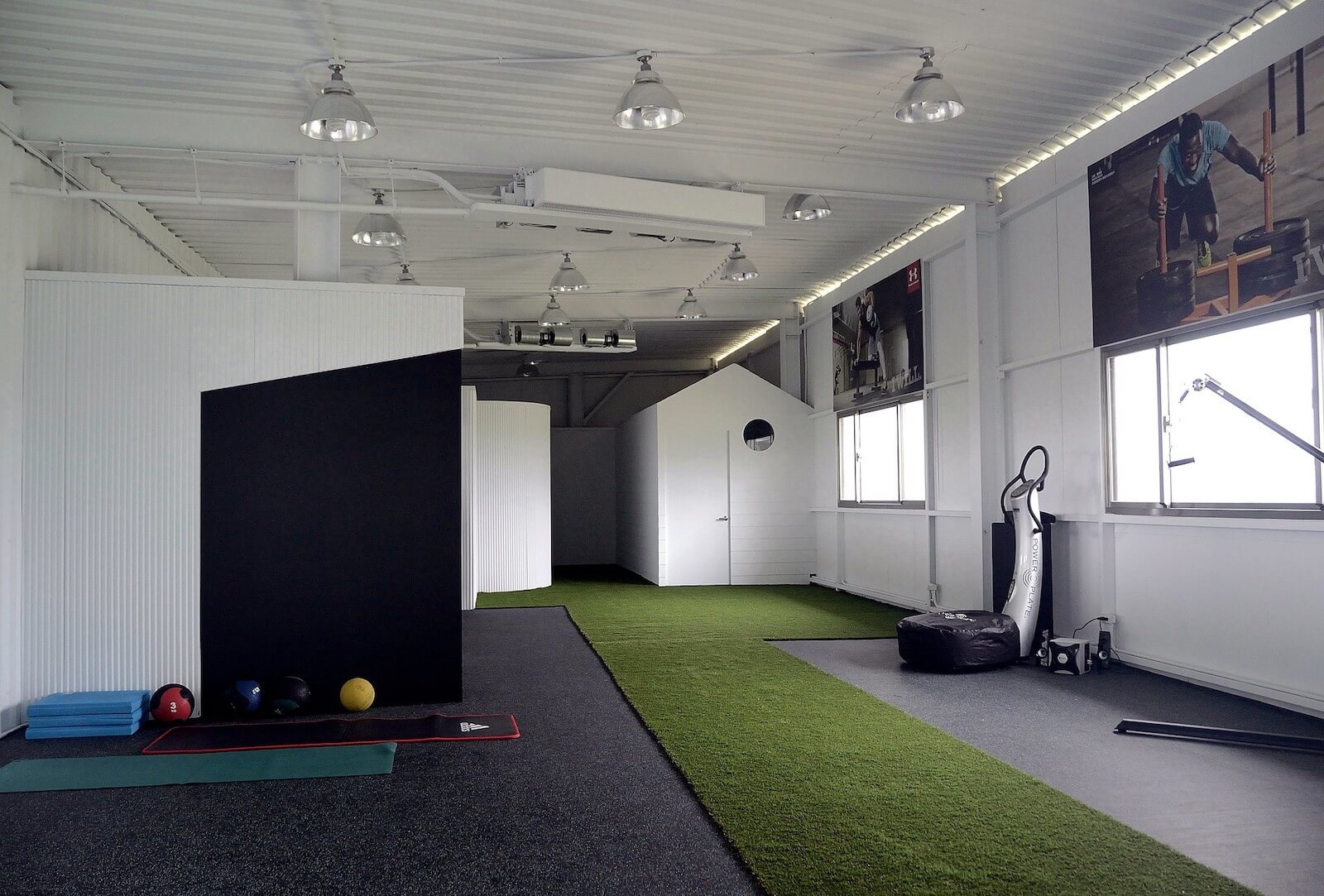此場所主要是訓練運動員的地方,為了讓運動員能集中精神,牆壁、天花板以白色為主色系。